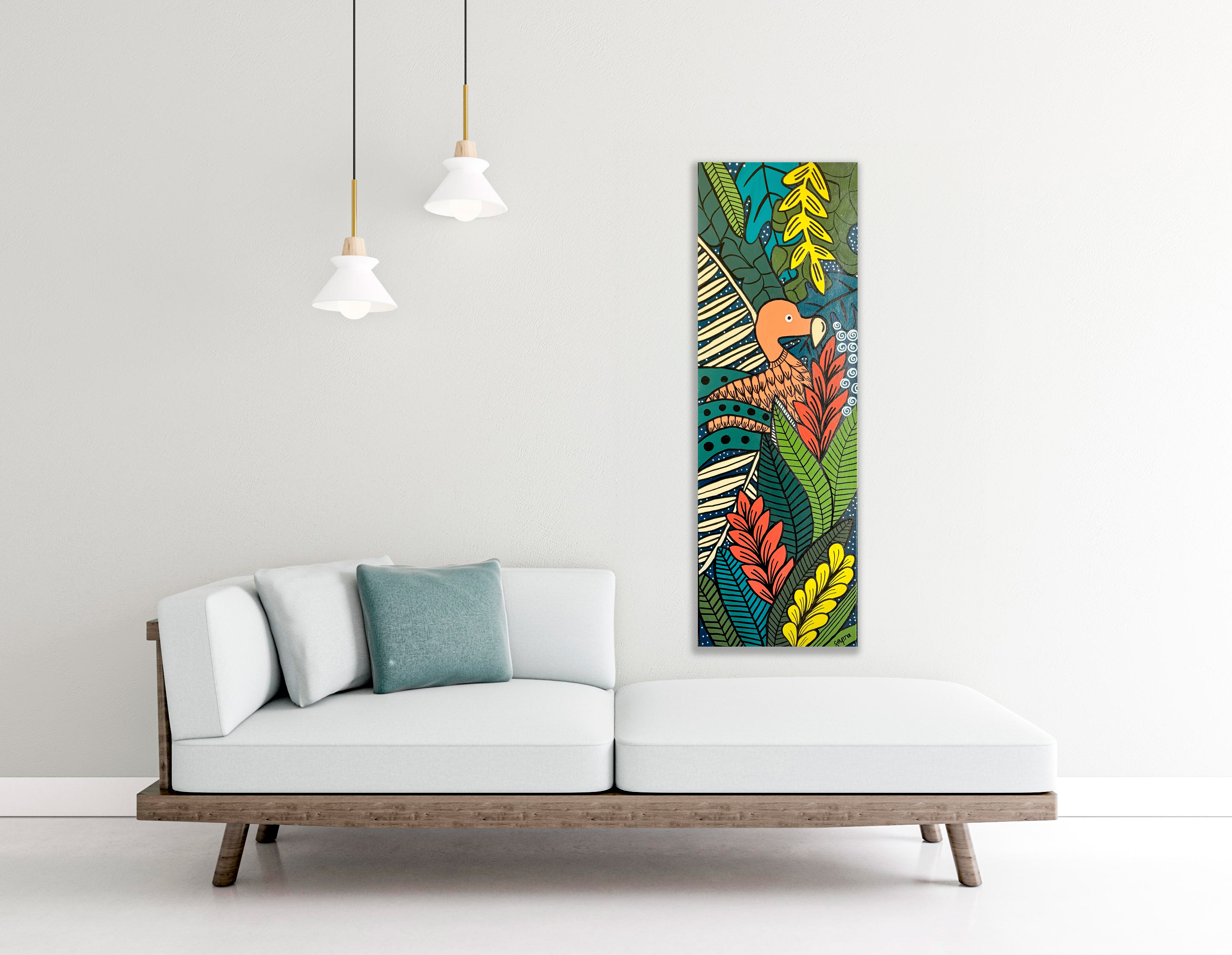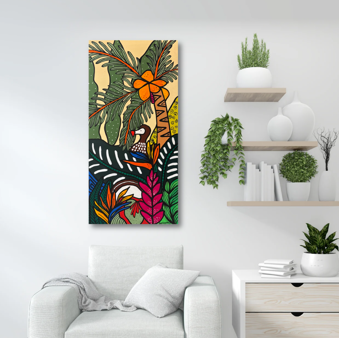 It is a true delight to collaborate once more with our esteemed client, who has chosen to commission paintings from Sapna Gallery for the second time. Each piece we create for them is a testament to our shared vision and passion for art. In the heart of a lush tropical forest, the dodo roamed freely, a symbol of the island’s unique charm and mystery. Amidst the vibrant foliage and the symphony of exotic birds, the dodo’s plump, feathered form moved gracefully. This enigmatic creature, with its gentle eyes and curious beak, embodied the spirit of a paradise untouched by time. Here, in this verdant sanctuary, the dodo thrived, its presence a testament to the beauty and fragility of nature’s wonders.