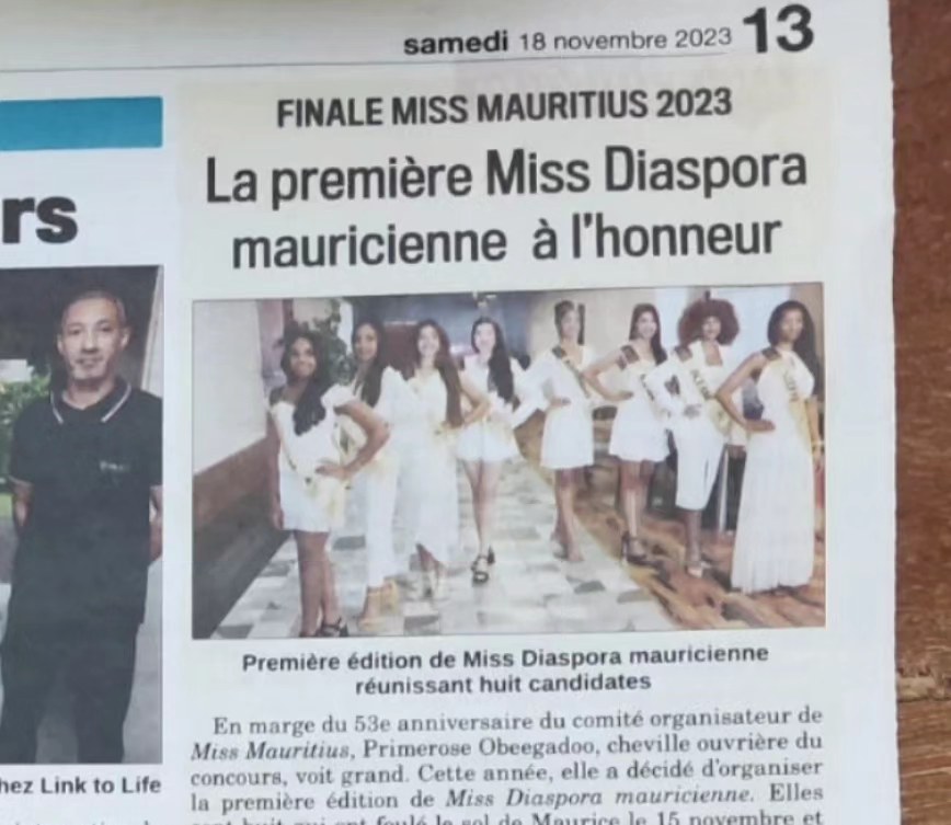 In 2023, I was a finalist in the Miss Mauritius pageant, where I received the Best National Costume award—a testament to the originality and creativity embedded in my art. In 2025, I was honored with The Young Outstanding Person Award from the Ministry of Youth and Sports, recognizing my contributions as a young entrepreneur creating positive change on the island.